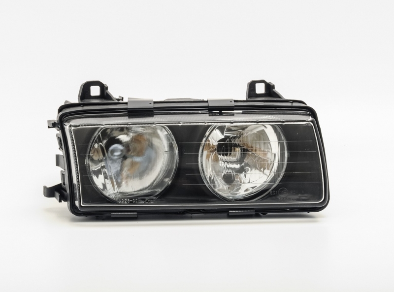 Права фара на БМВ Е36 купе / седан / туринг. Цоколь лампи : H7 + H7. Тип кріплення фари ZKW