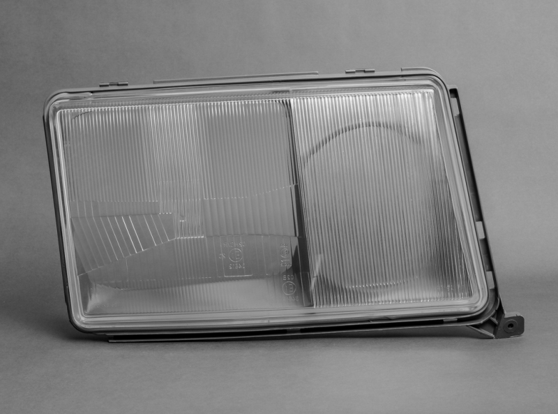 Скло фари правої Mercedes 124 1984-1990 (темна рамка)